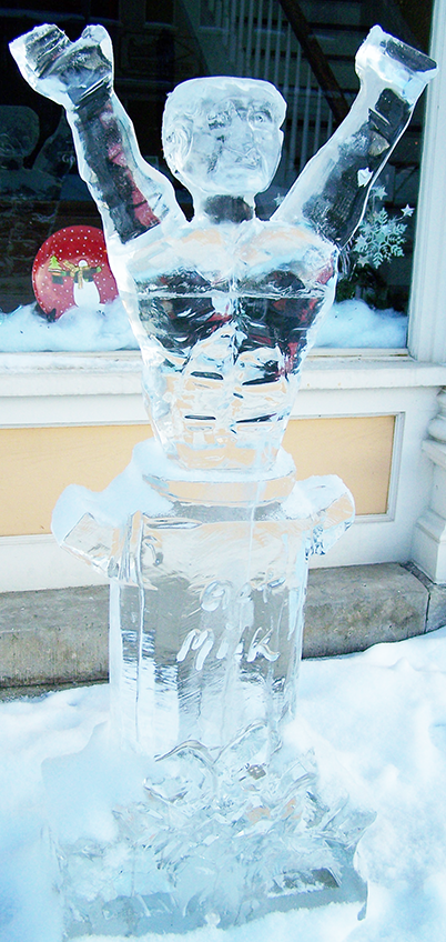 Chainsaws showered the surrounding area with ice chips as Harry emerged from the block of ice, and more delicate carving instruments were used to create the details that make this sculpture truly resemble the great magician. Many thanks to talented artist John Merucci of Icescapes who created the frozen masterpieces displayed up and down the main street of Marshall.